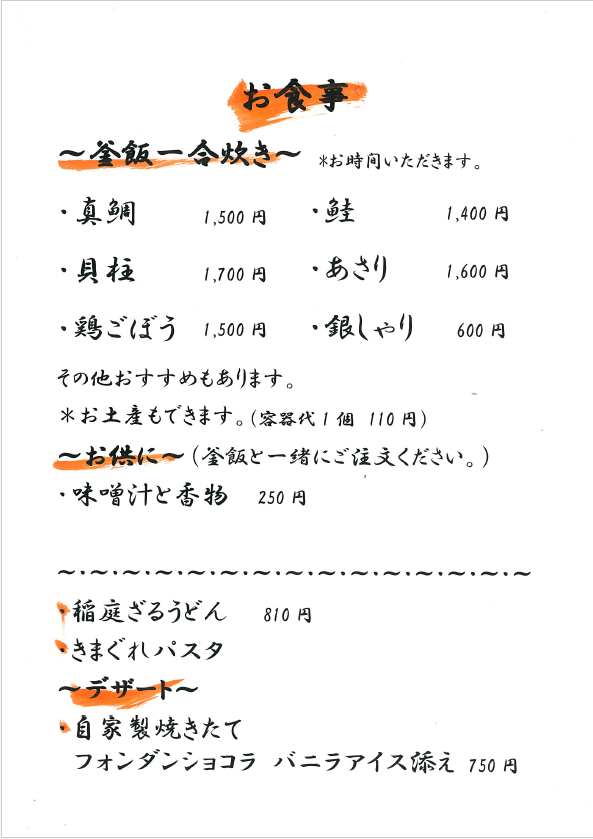 おしながき(各メニューをクリックすると拡大します)