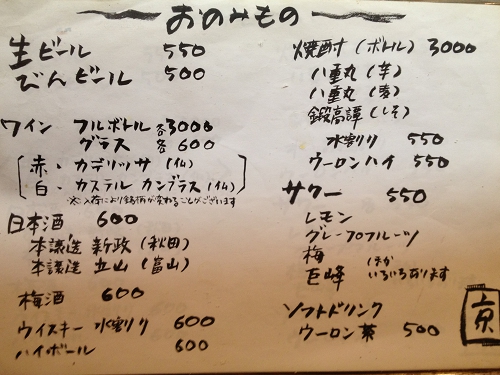 いろいろお料理でいろいろお酒をお楽しみください