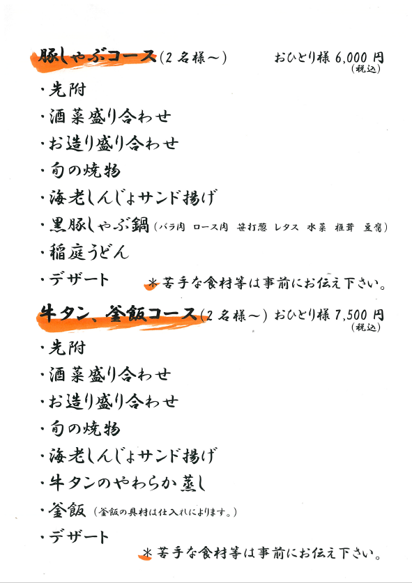 コース・酒菜・お野菜