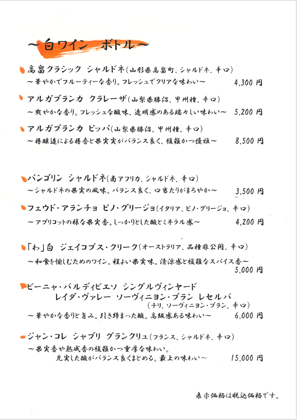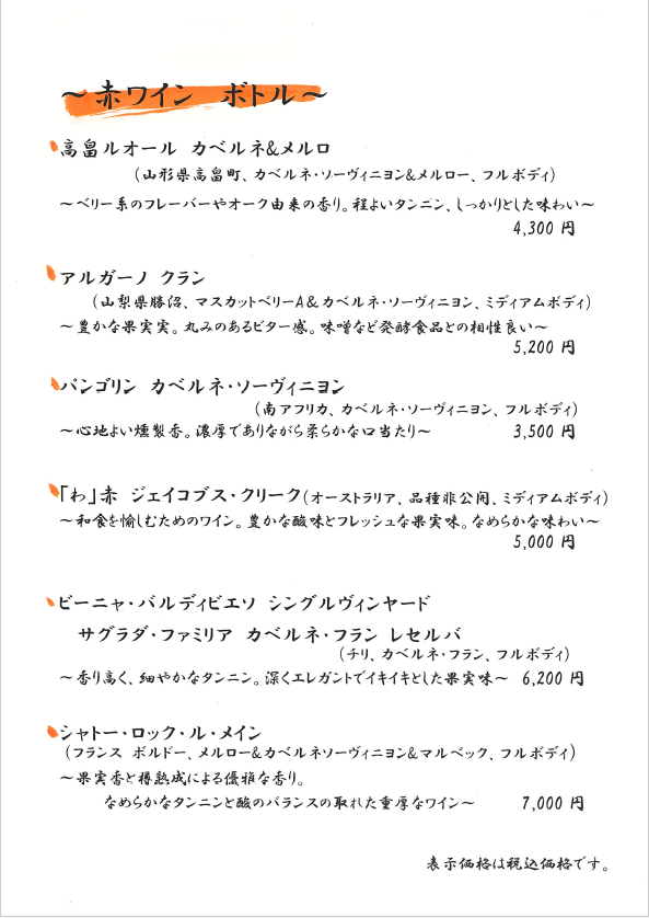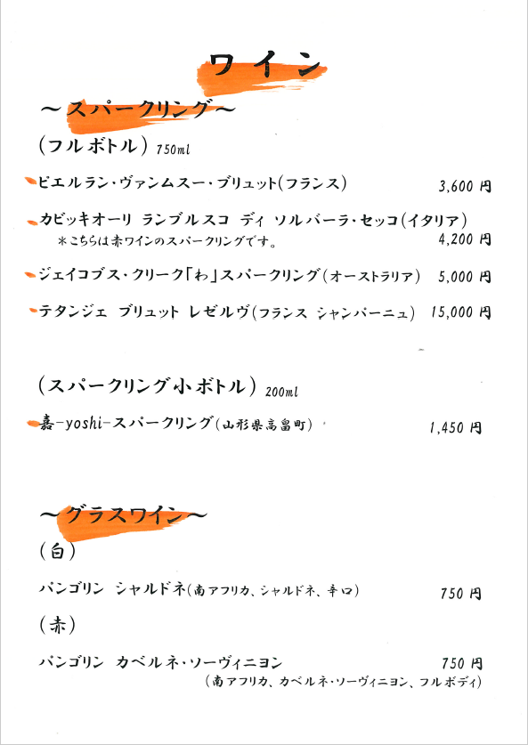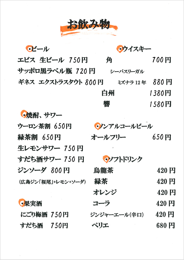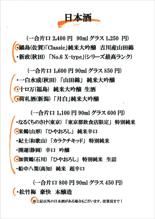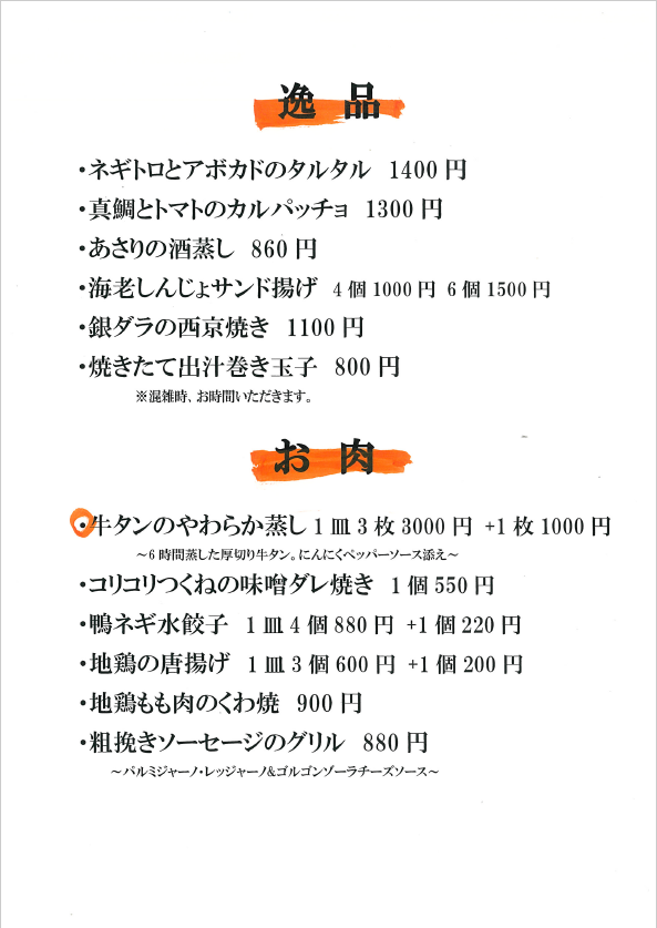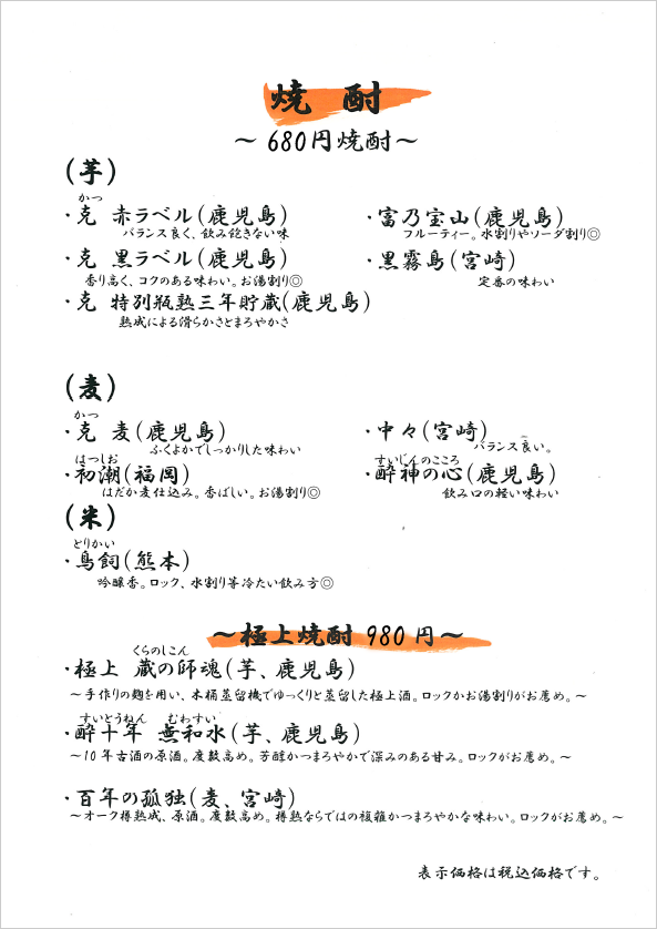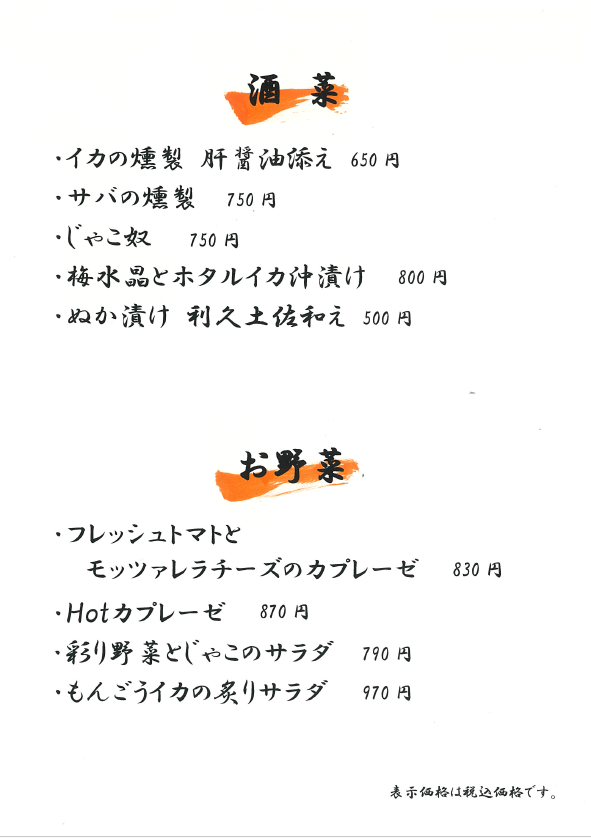 おしながき(各メニューをクリックすると拡大します)
